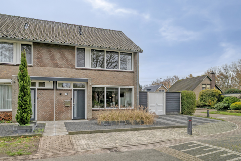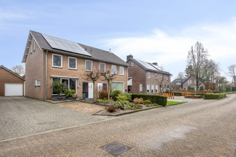 De tuin rondom de woning dient nog aangelegd te worden en kan geheel naar eigen wensen worden ingericht. Aan de achterzijde bevindt zich een vrijstaande stenen berging, geschikt voor opslag en/of hobbyruimte. Daarnaast beschikt het perceel over een carport met ruimte voor twee auto’s op eigen terrein. De achtertuin is gunstig gelegen op het zuiden.